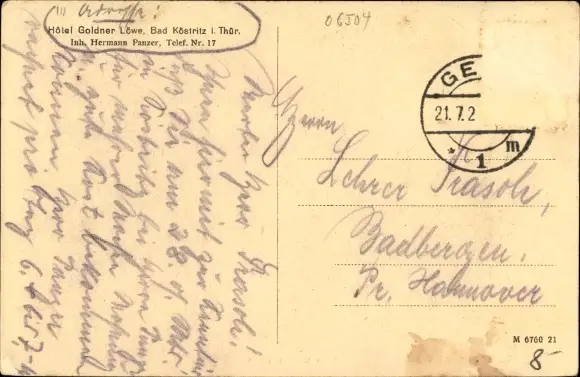 gelaufen, Briefmarke entfernt, Eckknicke, leicht fleckig, sonst guter Zustand - Inh.: Hermann Panzer