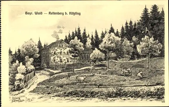 Ak Bad Kötzting im Bayerischen Wald, Reitenberg, Kühe