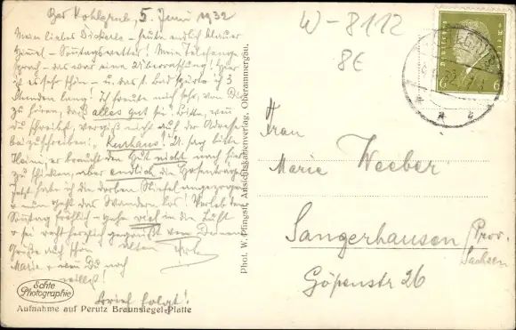 Zustand, siehe Scan, gelaufen, 1932 - ca 14 cm X 9 cm