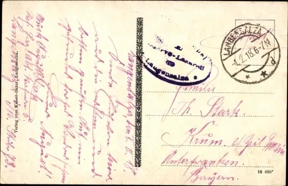 Zustand, siehe Scan, gelaufen, 1918 - ca 14 cm X 9 cm