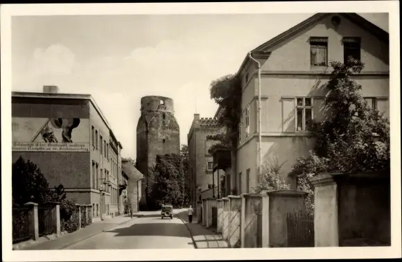 Ak Bad Liebenwerda in Brandenburg, Straßenpartie mit Blick auf Lubwartturm