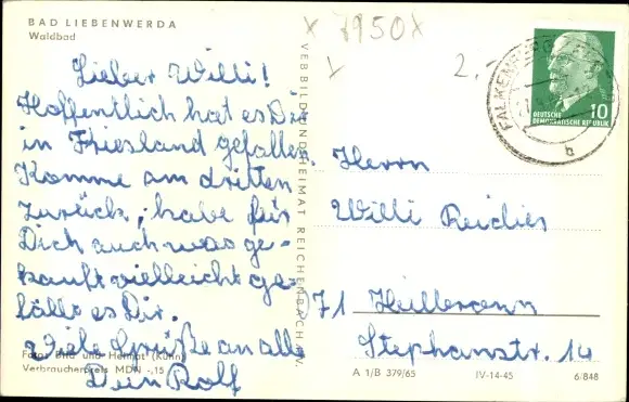 Zustand, siehe Scan, gelaufen, 1965 - ca 14 cm X 9 cm