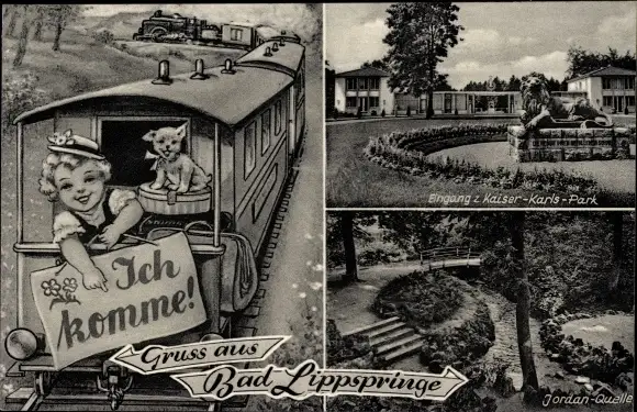 Ak Bad Lippspringe in Westfalen, Kaiser Karls Bad, Jordan Quelle, Lok