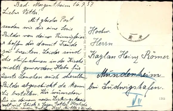 Zustand, siehe Scan, gelaufen, 1937 - ca 9 cm X 14 cm