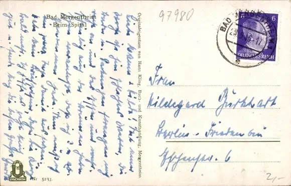 Zustand siehe Scan, gelaufen, 1943 - ca 14 cm X 9 cm