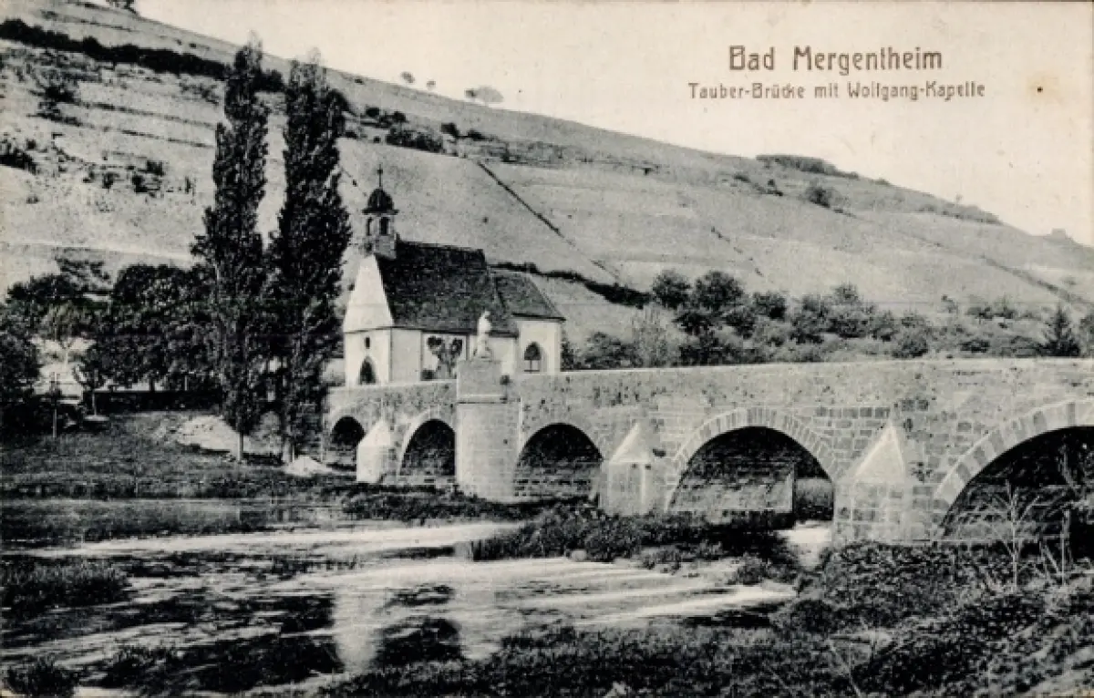 Ak Bad Mergentheim in Tauberfranken, Tauber-Brücke, Wolfgang-Kapelle