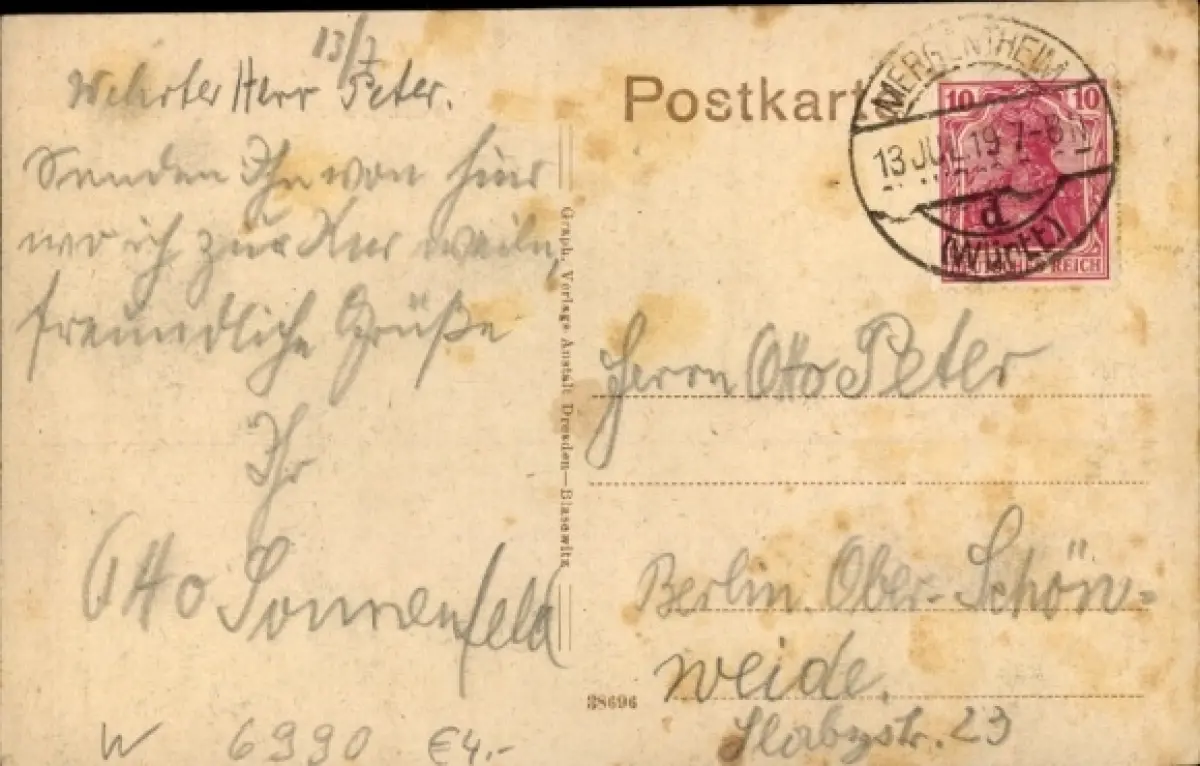 Zustand, siehe Scan, gelaufen, 1919 - ca 14 cm X 9 cm