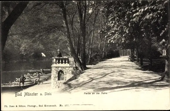 Ak Bad Münster am Stein, Partie an der Nahe, Boote