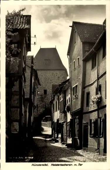 Ak Bad Münstereifel in Nordrhein Westfalen, Heisterbacher Straße mit Tor