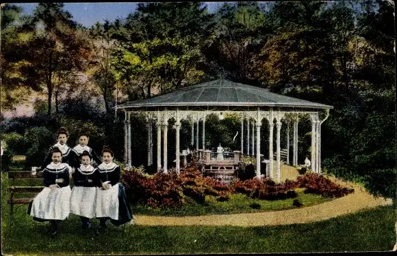 Ak Bad Nauheim, Brunnenmädchen am Karlsbrunnen, Pavillon