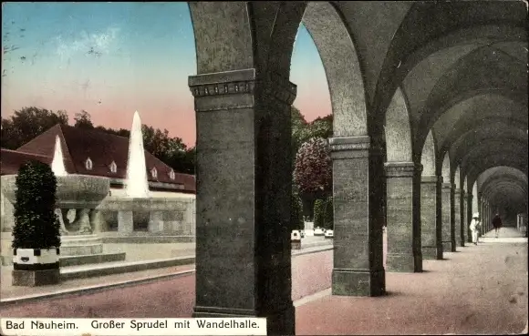Ak Bad Nauheim in Hessen, Großer Sprudel mit Wandelhalle