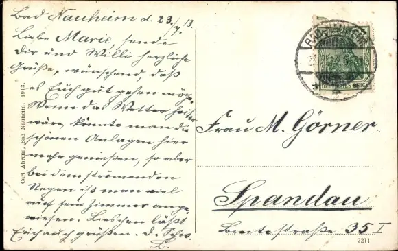 Zustand, siehe Scan, gelaufen, 1913 - ca 14 cm X 9 cm