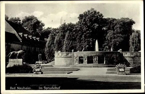Ak Bad Nauheim in Hessen, Im Sprudelhof, Springbrunnen, Löwenstatue