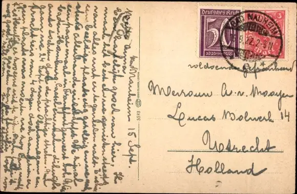 Zustand, siehe Scan, gelaufen, 1922 - ca 14 cm X 9 cm