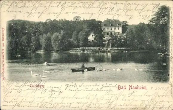 Ak Bad Nauheim in Hessen, Teichhaus, Ruderboot