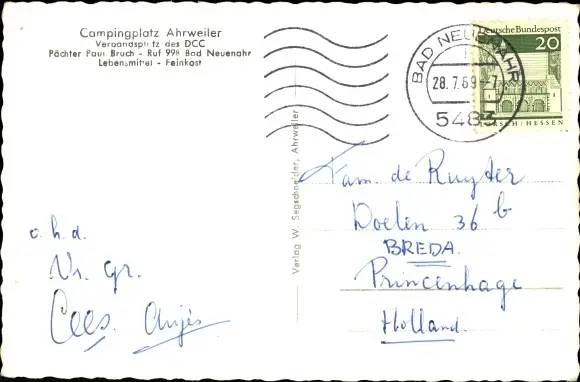 Zustand, siehe Scan, gelaufen, 1969 - ca 9 cm X 14 cm