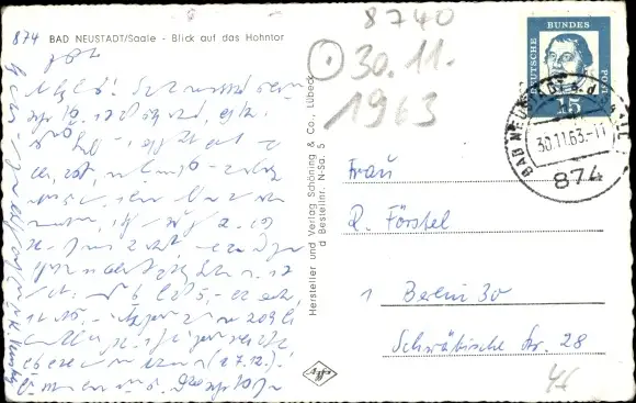 Zustand, siehe Scan, gelaufen, 1963 - ca 14 cm X 9 cm