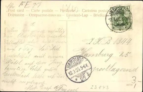 Zustand, siehe Scan, gelaufen, 1903 - ca 14 cm X 9 cm