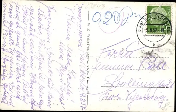 gelaufen 1957, Eckknick links oben, sonst guter Zustand