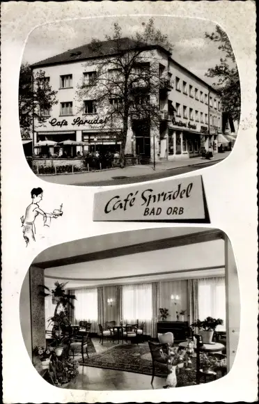 Ak Bad Orb im Main Kinzig Kreis Hessen, Innen und Außenansicht vom Café Sprudel
