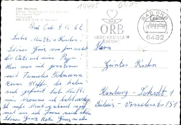 Zustand, siehe Scan, gelaufen, 1962- Inh. Fam. Platt - ca 15 cm X 10 cm