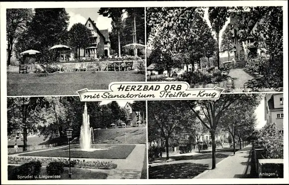 Ak Bad Orb im Spessart, Sanatorium Pfeiffer Krug, Sprudel, Liegewiese, Anlagen