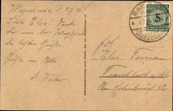 Zustand, siehe Scan, gelaufen, 1924 - ca 14 cm X 9 cm