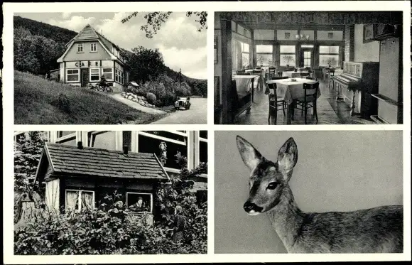 Ak Bad Orb in Hessen, Cafe Spessartruhe, Innen- und Außenansicht