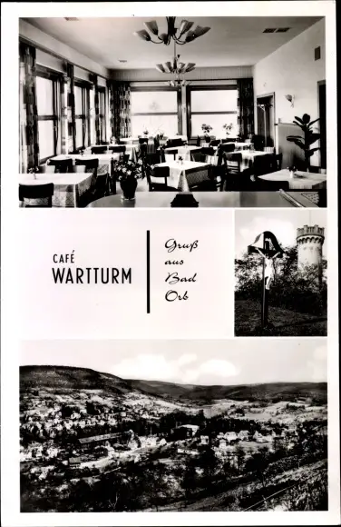 Ak Bad Orb in Hessen, Café Wartturm, Gesamtansicht