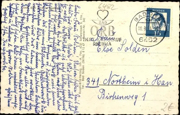 Zustand, siehe Scan, gelaufen, 1964 - ca 14 cm X 9 cm