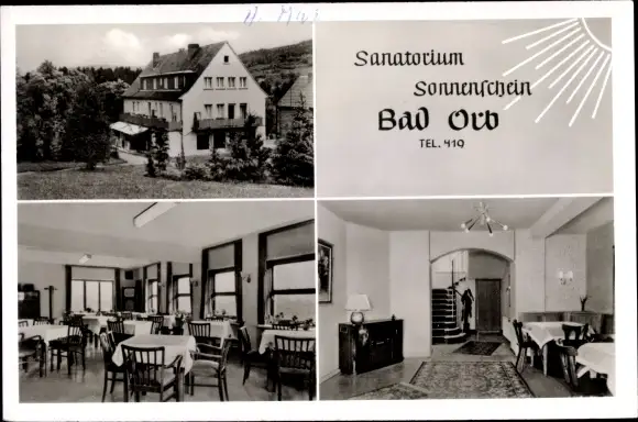 Ak Bad Orb in Hessen, Sanatorium Sonnenschein, Innen und Außenansicht
