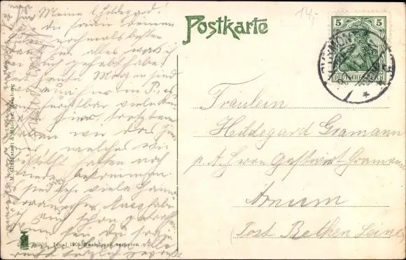 Zustand, siehe Scan, gelaufen, 1911 - ca 14 cm X 9 cm