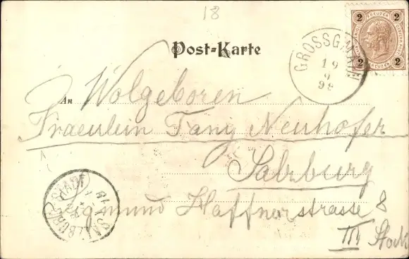 Zustand, siehe Scan, gelaufen, 1899 - ca 15 cm X 9 cm