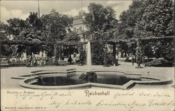 Ak Bad Reichenhall in Oberbayern, Kurplatz, Kurhaus, Springbrunnen