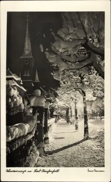 Ak Bad Reichenhall in Oberbayern, Winternacht, Kirchturm