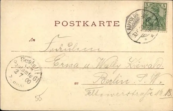 gelaufen 1900, Eckknick links oben, sonst guter Zustand