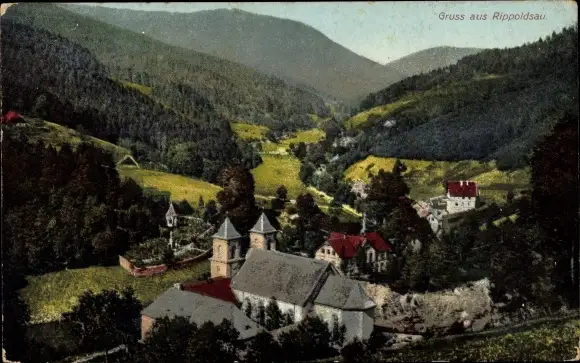 Ak Bad Rippoldsau Schapbach im Schwarzwald, Teilansicht aus der Vogelschau