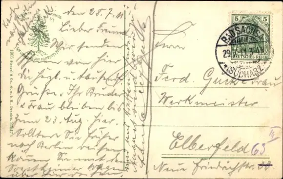 Zustand, siehe Scan, gelaufen, 1911 - ca 14 cm X 9 cm