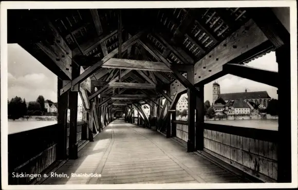 Ak Bad Säckingen am Hochrhein, Rheinbrücke, Kirche
