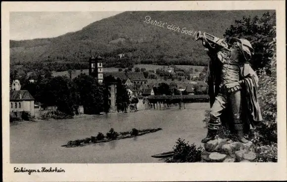 Ak Bad Säckingen am Hochrhein, Teilansicht, Trompeter