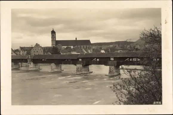 Ak Bad Säckingen am Hochrhein, überdachte Brücke zum Ort