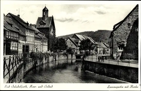 Ak Bad Salzdetfurth, Lammepartie mit Kirche