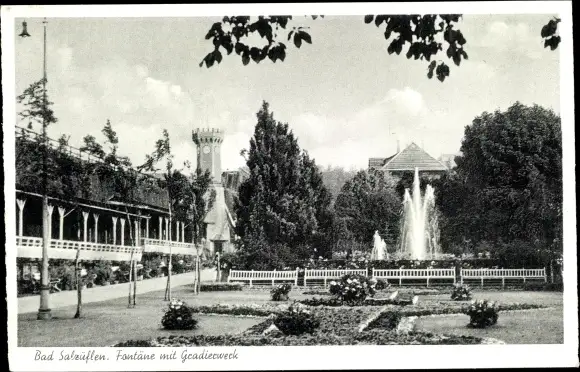 Ak Bad Salzuflen in Lippe, Fontäne mit Gradierwerk