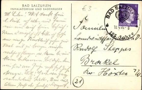 Zustand, siehe Scan, gelaufen, 1944 - ca 14 cm X 9 cm