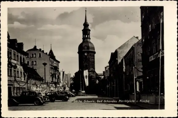 Ak Bad Schandau Elbe, Marktplatz, Kirche