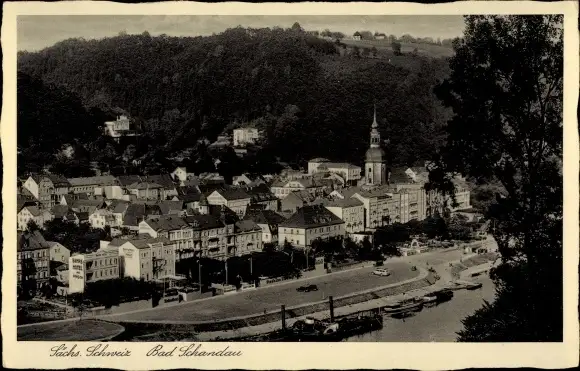 Ak Bad Schandau Sächsische Schweiz, Durchblick zum Ort