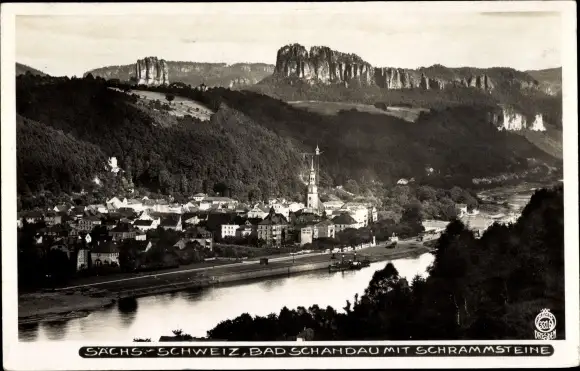 Ak Bad Schandau Sächsische Schweiz, Gesamtansicht mit Schrammsteine