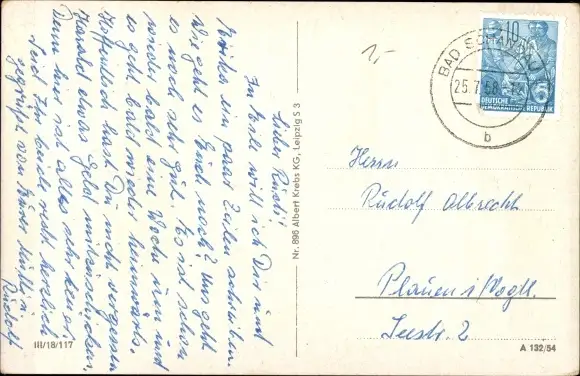 Zustand, siehe Scan, gelaufen, 1958 - ca 14 cm X 9 cm