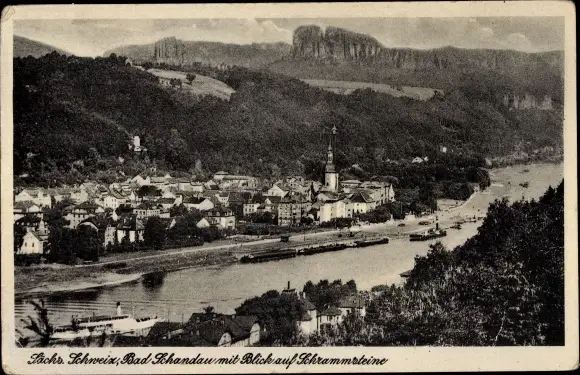 Ak Bad Schandau Sächsische Schweiz, Ort mit Schrammsteine