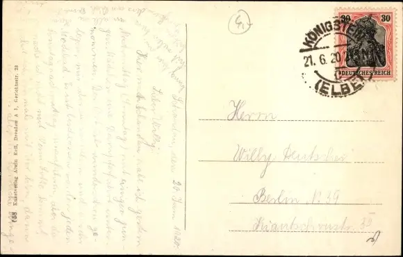 Zustand, siehe Scan, gelaufen, 1920 - ca 14 cm X 9 cm